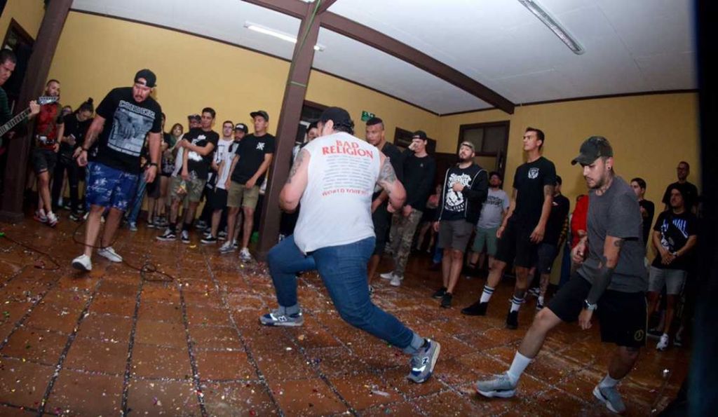 Tenía mucho tiempo de no asistir a un chivo de puro Hardcore (Fiesta Hardcore para todos); ayer pude recordar y vivir junto a mí hijo (de 10 años, cuesta mucho poder llevarlo algún chivo por ser menor de edad y siempre quiere ir); lo que era esta escena tan violenta pero a la vez tan unida … el chivo inició pasada las 3pm y desde el inicio se veía la gran asistencia de las personas que estaban preparadas al desorden que se iba a dar en el lugar (Costado Oeste de la Alianza Francesa, San José), un chante pequeño pero muy chuzo y con buena acústica… una verdadera fiesta, en la cual había piñata, confites, confeti, hot dogs, sombreritos y más…